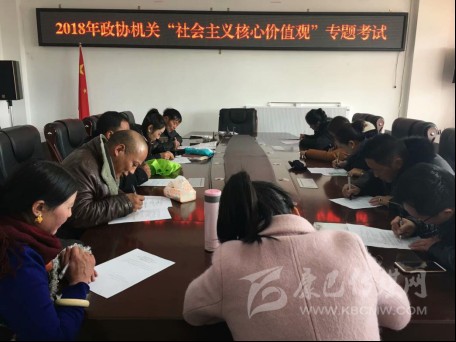 為書面測(cè)試廣大干部職工“社會(huì)主義核心價(jià)值觀”的實(shí)踐意義,11月29日下午2:00,2018年石渠縣政協(xié)機(jī)關(guān)“社會(huì)主義核心價(jià)值觀”專題考試,在縣政協(xié)黨組成員、副主席楊國(guó)華的監(jiān)考下開始。其書面閉卷筆試為:?jiǎn)雾?xiàng)和多項(xiàng)選擇題及簡(jiǎn)答“三嚴(yán)三實(shí)”與“社會(huì)主義核心價(jià)值觀”內(nèi)容和論述題:一是結(jié)合藏區(qū)與自己的思想實(shí)際及政協(xié)工作特點(diǎn),有條理的闡述如何開展“社會(huì)主義核心價(jià)值觀”實(shí)踐活動(dòng);二是踐行“社會(huì)主義核心價(jià)值觀”的重大意義及措施、方法等。通過一小時(shí)左右的臨場(chǎng)測(cè)試,應(yīng)考的政協(xié)機(jī)關(guān)干部職工含臨時(shí)工、駕駛員、實(shí)習(xí)生等,人人均遞交了滿意的答卷。