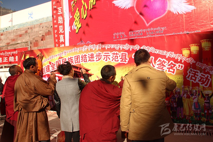 其實(shí),在白玉,像澤稱降措這樣感人肺腑的故事絕非個(gè)案。采訪中,筆者細(xì)細(xì)梳理五年來(lái)白玉的創(chuàng)建舉措與成績(jī),完全可以用“務(wù)實(shí)”“扎實(shí)”這四個(gè)字來(lái)形容。自2014年創(chuàng)建活動(dòng)啟動(dòng)以來(lái),縣委、縣政府嚴(yán)格按照“三年創(chuàng)建、四年提升”要求,緊扣“八進(jìn)活動(dòng)、共建對(duì)子”兩個(gè)關(guān)鍵,聚焦“民族團(tuán)結(jié)促發(fā)展、民族團(tuán)結(jié)促穩(wěn)定、民族團(tuán)結(jié)促民生”三大目標(biāo),采取“精準(zhǔn)安排、精準(zhǔn)施策、精心打造、精細(xì)管理”四項(xiàng)舉措,并通過(guò)層層簽訂目標(biāo)責(zé)任書(shū)和層層落實(shí)創(chuàng)建標(biāo)準(zhǔn)、測(cè)評(píng)指標(biāo),進(jìn)而形成了“黨委統(tǒng)一領(lǐng)導(dǎo)、黨政齊抓共管、部門(mén)各司其職、社會(huì)廣泛參與”的創(chuàng)建工作格局;采取“年度定方案、季度有督查、月月抓推進(jìn)、層層重落實(shí)”的方式,通過(guò)召開(kāi)專題會(huì)、動(dòng)員會(huì)、現(xiàn)場(chǎng)會(huì)、督導(dǎo)會(huì)、匯報(bào)會(huì)等形式,抓問(wèn)題、添措施、促整改、補(bǔ)短板、求提升,一系列動(dòng)真碰硬的推進(jìn),使得創(chuàng)建工作由“虛”變“實(shí)”;按照“精準(zhǔn)宣講、掛圖作戰(zhàn)、對(duì)單宣講、對(duì)村消號(hào)、定學(xué)式”的宣講思路,采取“縣到鄉(xiāng)、鄉(xiāng)進(jìn)村、村入戶、寺廟與僧尼”四個(gè)面對(duì)面等方式,并結(jié)合常態(tài)化開(kāi)展的“四下鄉(xiāng)”活動(dòng),廣泛學(xué)習(xí)宣傳黨的民族理論、宗教政策、法律法規(guī)以及各項(xiàng)惠農(nóng)惠民政策。五年來(lái),全縣累計(jì)出動(dòng)宣講服務(wù)人員1180人次,開(kāi)展宣講宣教、“四下鄉(xiāng)”活動(dòng)以及民族團(tuán)結(jié)“八進(jìn)”活動(dòng)多達(dá)988場(chǎng)次,覆蓋基層干部、農(nóng)牧民群眾和及寺廟近8萬(wàn)人次,發(fā)放各類宣傳資料2.3萬(wàn)余份、圖書(shū)光盤(pán)4500余本(張),贈(zèng)送各種書(shū)籍4130余冊(cè),放映電影152場(chǎng)次;在主要街道、繁華路段、出租車頂屏、燈箱燈桿以及干線公路沿線堡坎,設(shè)置LED屏、宣傳牌、滾動(dòng)標(biāo)語(yǔ)和墻體標(biāo)語(yǔ),推送各類創(chuàng)建信息上萬(wàn)余條,在各機(jī)關(guān)、單位、醫(yī)院、學(xué)校、寺廟、鄉(xiāng)鎮(zhèn)、村組(社區(qū))設(shè)置民族團(tuán)結(jié)標(biāo)語(yǔ)、宣傳櫥窗、展板和文化墻,推出各類宣傳欄2145個(gè)、宣傳展板 435個(gè);在縣級(jí)宣傳平臺(tái)開(kāi)設(shè)專欄,完成各類主題宣傳300余場(chǎng)次;舉辦創(chuàng)建“萬(wàn)人簽名”、鍋莊節(jié)、演講比賽、籃球友誼賽、知識(shí)競(jìng)賽、文藝演出等各類民族團(tuán)結(jié)主題活動(dòng)近20場(chǎng),實(shí)現(xiàn)了創(chuàng)建宣講宣傳宣教全方位、多層面、立體式和廣覆蓋;切實(shí)將民族團(tuán)結(jié)工作與脫貧攻堅(jiān)、基層黨建、群眾工作、鄉(xiāng)村治理、依法治縣等有機(jī)結(jié)合,大力開(kāi)展干群結(jié)對(duì)認(rèn)親、干部聯(lián)寺聯(lián)僧、支部共建共創(chuàng)以及警民共建等活動(dòng);切實(shí)在廣大農(nóng)牧民群眾、幫扶援建隊(duì)伍、宗教寺院、學(xué)校師生、企業(yè)以及部隊(duì)中發(fā)現(xiàn)典型、宣傳典型,進(jìn)而在全縣上下形成了“學(xué)先進(jìn)、趕先進(jìn)、當(dāng)標(biāo)兵”的濃厚氛圍;采取政策傾斜、整合項(xiàng)目、配套資金等措施,狠抓示范點(diǎn)規(guī)范化建設(shè)。目前,全縣所有鄉(xiāng)(鎮(zhèn))、縣級(jí)黨政機(jī)關(guān)、武警部隊(duì),45%以上的村(社區(qū))、企事業(yè)單位和寺廟已成為民族團(tuán)結(jié)進(jìn)步示范地區(qū)或示范單位;……精準(zhǔn)發(fā)力、持續(xù)給力的創(chuàng)建活動(dòng),有效形成了創(chuàng)建活動(dòng)“人人參與、人人推動(dòng)、人人負(fù)責(zé)、人人共享”的喜人局面。