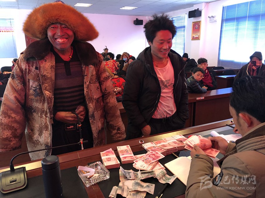 2018年,村上經(jīng)營(yíng)的超市有了7萬(wàn)元的收入,將超市7萬(wàn)元和28戶貧困戶養(yǎng)牦牛每戶上交集體經(jīng)濟(jì)的260元共計(jì)77280元作為集體經(jīng)濟(jì)的分紅,分配方式為總金額的20%按40戶貧困戶戶均386.4元進(jìn)行分配、剩余80%按全村村民779人按人均79元進(jìn)行分配,實(shí)現(xiàn)了貧困戶得到兩次分紅。
