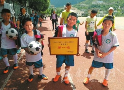 山里娃娃吃得苦、受得累、體能好、跑得快。通過集訓(xùn)體能、技藝和賽場(chǎng)對(duì)抗能力,球員在短時(shí)間里球技突飛猛進(jìn),接連取得優(yōu)異戰(zhàn)績(jī):去年6月,參加“2018年瀘定縣中小學(xué)生足球選拔賽”獲得了低段組第一名;去年7月,參加“甘孜州第三屆青少年校園足球聯(lián)賽”獲得了甘孜州東路片區(qū)足球賽低段組第一名。