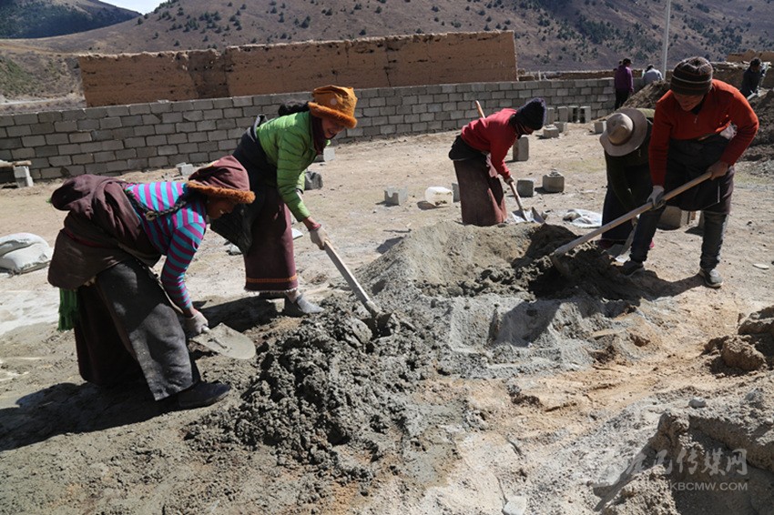 在工程實施中,全組的村民相互幫助,齊心協(xié)力建新房?!白蛱齑蠹?guī)臀野逊孔有薜冒桶瓦m適、漂漂亮亮的。我也來幫四郎曲西建房。這樣你幫我,我?guī)湍?,你幫他,要不了多久,我們這里家家戶戶都會很漂亮?!闭谠鹤永飻嚢杌覞{的村民格絨多登微笑著說。
