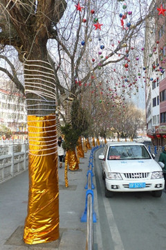 本網(wǎng)訊(記者 周華) 攝在馬年春節(jié)即將來臨之際,一批喜慶的新年裝飾亮相康定街頭,為節(jié)日的康定城增添了幾分喜氣。據(jù)康定縣市政管理局有關(guān)人士介紹,每年春節(jié),康定都要采取措施營造節(jié)日氛圍。今年的節(jié)日氛圍營造本著節(jié)儉、喜慶、熱烈的原則,在色調(diào)上突出傳統(tǒng)的紅色,融入了福、春、馬年生肖等元素,既有傳統(tǒng)的特點,又有民族特色。據(jù)了解,這些節(jié)日裝飾主要分布在城市街區(qū)、廣場及繁華地段。在有城市行道樹的街道,則采用裝飾與燈光結(jié)合的方式,突出城市的動感,使夜晚的康定城更加浪漫而富有生機(jī)。