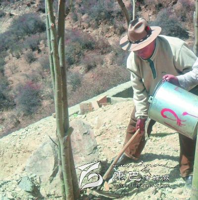 “為大地播綠,植樹造林美化家鄉(xiāng)。”從警一生的丁真曲扎退休前就有用晚年在家鄉(xiāng)植樹綠化,為后代造福的想法。退休賦閑在家,別無(wú)所求的丁真曲扎用行動(dòng)讓自己的想法變成現(xiàn)實(shí)。