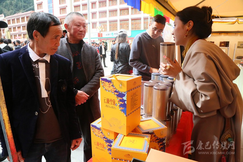 24個(gè)帳篷,井然有序地分布。既有自然天賜的蟲草、松茸、貝母,又有高原特產(chǎn)酸奶、酥油、糌粑;既有傳統(tǒng)手工刀具、馬具、服裝,又有科學(xué)種植的蔬菜、水果、雪菊;既有傳統(tǒng)藏醫(yī)的系列產(chǎn)品展示,又有專業(yè)學(xué)院援建的產(chǎn)學(xué)研成果的“露臉”,整個(gè)展銷會(huì)琳瑯滿目,讓人目不暇接。