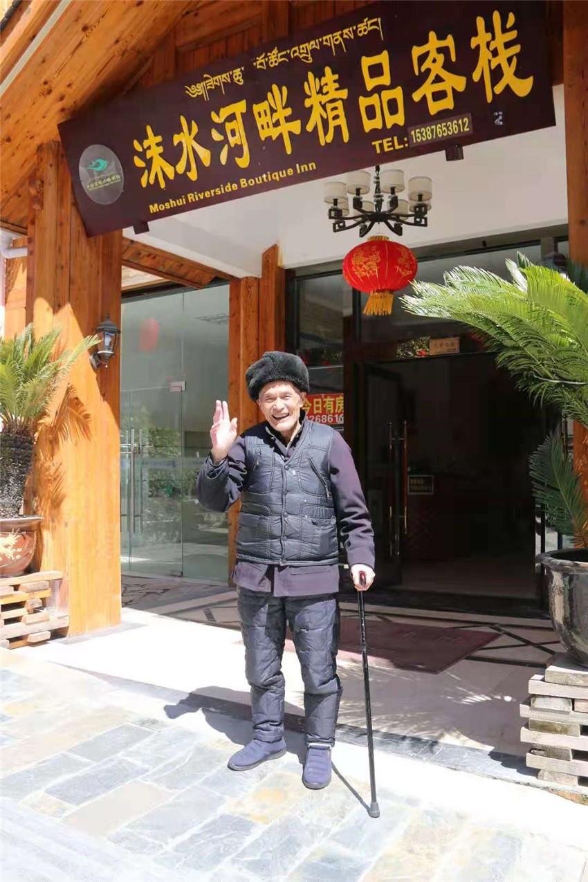 不知不覺中,采訪到了尾聲。伍國梁堅(jiān)持送記者離開,步伐雖緩,每一步都踩得很穩(wěn)。當(dāng)走出“沫水河畔精品民宿”大門時,伍國梁一句“Welcome To MoXi!”令記者十分感動。因?yàn)?,這話語背后,是一坐小鎮(zhèn)幾十年間的變化,也是一位耄耋老人對逝去歲月的認(rèn)可,還有對未來的美好憧憬!