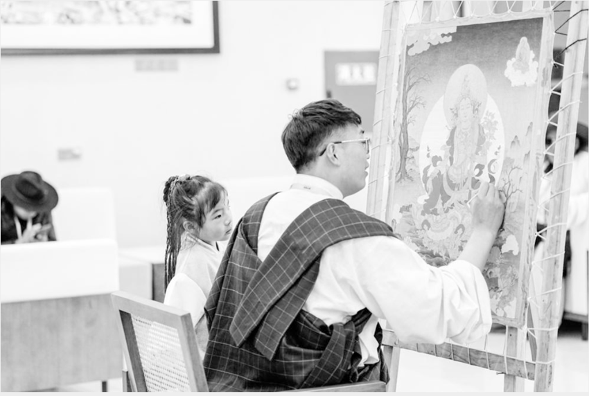 “絲路甘孜·龍燈牧場(chǎng)”景區(qū)里體驗(yàn)畫(huà)唐卡。