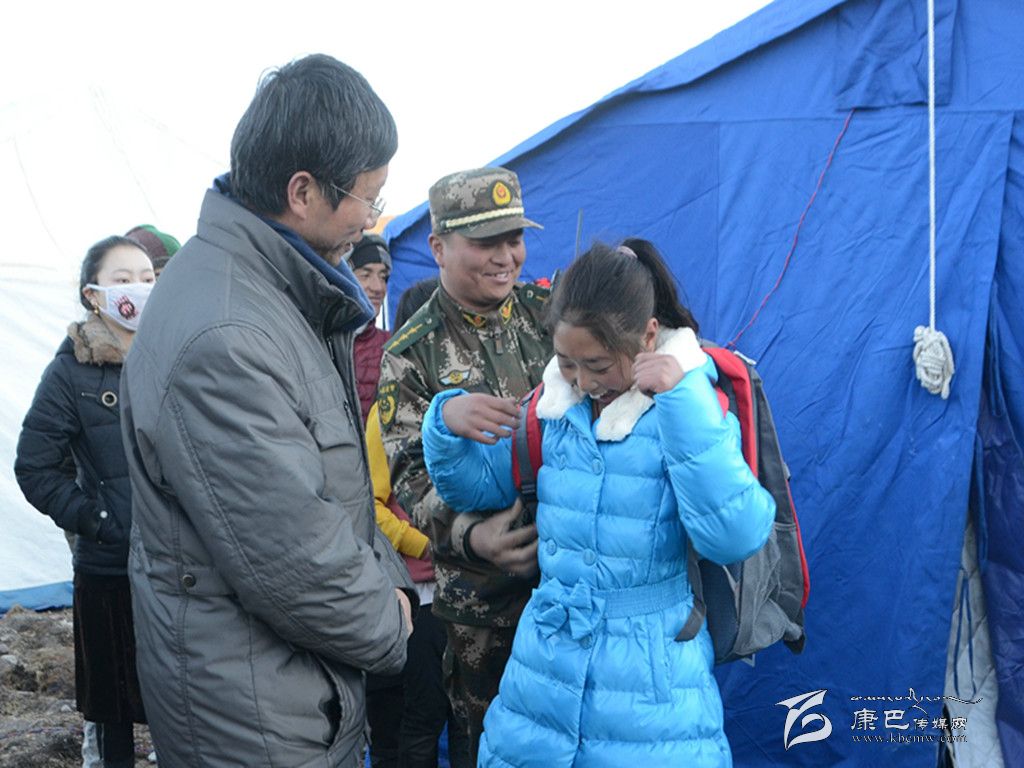由于受此次地震影響,西康福利學(xué)校的孩子們已經(jīng)放假回到親戚家寄宿。塔公救災(zāi)一線的官兵們利用休息時間,向胡忠仔細(xì)打聽5個孤兒的身高和臨時住址,大家主動集資專門采購了羽絨服、書包、文具和米面油等物資。10日下午,官兵們在西康福利學(xué)校老師的陪同下,驅(qū)車百余公里,先后深入到塔公鎮(zhèn)江巴村、多拉一村、各日馬村、下馬龍村和朋布西鄉(xiāng)奪讓村,跨河溝、爬山坡,鉆帳篷、進(jìn)板房,提著新買的衣服、書包,扛著米面,逐一走訪這些孤兒所寄宿的家,勉勵他們在困境中自強(qiáng)不息,努力學(xué)習(xí),為自己的夢想而頑強(qiáng)拼搏,并與孤兒所寄宿的親戚細(xì)心溝通交流,囑咐他們照顧好可憐的孩子,有困難找武警,大家齊心協(xié)力為孤兒創(chuàng)造一個溫暖的家,為孤兒的成長成才盡最大的努力。