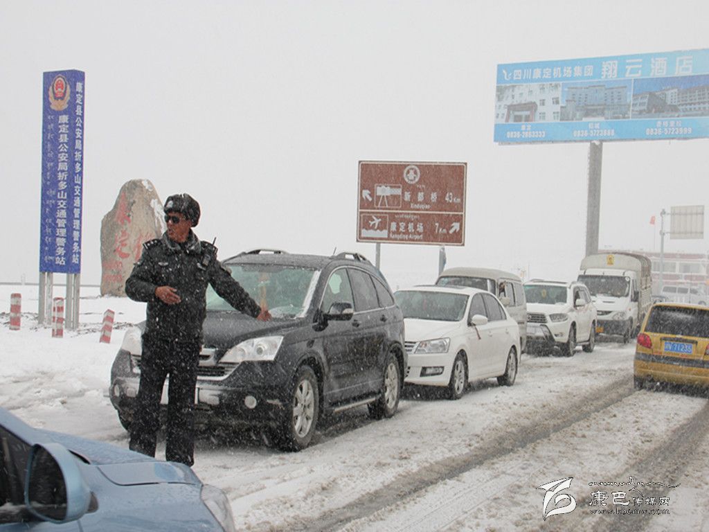 高高的折多山,氣候惡劣,有時(shí)竟七月飛雪。在風(fēng)雪中,處處可以看到王洛讓偉岸的身軀,因?yàn)橛辛怂麄兊膱?jiān)守,換來游客對甘孜交警的由衷贊嘆。