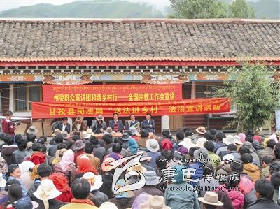 為了使普法工作常態(tài)化,鄉(xiāng)城縣組建了法律服務隊,常態(tài)深入鄉(xiāng)村、寺廟、草場開展法律服務。組建老干部宣講團,深入開展“法律七進”活動、“六五普法”、“送法下鄉(xiāng)”、“反邪教警示教育”、“蟲草、松茸季節(jié)法制宣傳”等活動。在寺廟僧侶中常態(tài)開展“一反兩講”、“三反三珍”宣傳教育等,引導宗教與社會主義社會相適應。多姿多彩、新穎生動的普法載體,組成了道道靚麗的法制宣傳風景線。