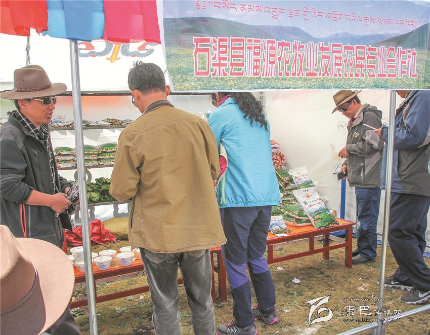8月3日是石渠縣帳篷節(jié)的最后一天,清晨的陽光透過炊煙傾灑在草原千余頂帳篷上,40多歲的藏族漢子嘎戎從生活區(qū)的帳篷里出來,走向不遠(yuǎn)的太陽部落帳篷商貿(mào)城集市。那里安扎著400多頂帳篷,有商戶370家,周邊還有50多個流動的小商販。嘎戎所在的石渠縣福源農(nóng)牧業(yè)發(fā)展農(nóng)民合作社就是其中的一家參展商。從帳篷節(jié)開始,嘎戎就和其它5個人輪流值守這個他們倍加珍惜的展位,那是他們合作社自今年4月份成立至今第一次在如此重大的場合中露面,經(jīng)過這次檢驗,他們對自己的產(chǎn)品更加有信心。駐真達(dá)村第一書記祝修濤告訴記者,短短一個星期,合作社展售的糌粑、人參果、奶渣近2000斤,銷售額達(dá)4萬多元。這個農(nóng)民專業(yè)合作社以扶貧為己任,從建設(shè)種植基地到水磨房加工投入了200多萬元,全村50戶村民參與,合作社將原料統(tǒng)一發(fā)給村民加工,再統(tǒng)一收起來,統(tǒng)一包裝銷售。祝修濤說,社里的產(chǎn)品剛開始只是在當(dāng)?shù)爻鍪?,雖然投入大但產(chǎn)量不敢做大,這次有這個平臺得到了市場的認(rèn)可,他們對合作社的發(fā)展充滿了信心。祝修濤,作為該村的第一書記,他要帶領(lǐng)著這個合作社好好規(guī)劃、大干一場。