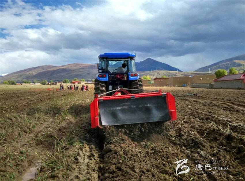 甘孜縣拖壩村馬鈴薯全程機(jī)械化示范基地機(jī)收現(xiàn)場(chǎng)。