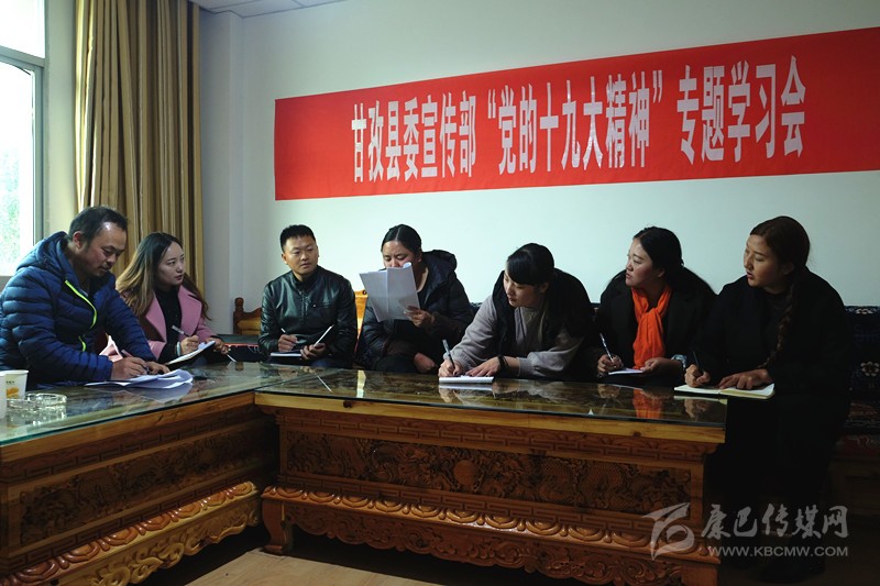 本網(wǎng)訊  (則瑪拉姆 文/圖)連日來,甘孜縣依托中心組、干部講堂、“三級三講”等學教平臺,圍繞“黨的十九大精神、《中國共產(chǎn)黨章程(修正案)》、習近平新時代中國特色社會主義思想、決勝全面建成小康社會”四大專題開展學習,采取專家輔導講、專題研討學、集中考學評等形式,迅速組織廣大黨員干部原原本本學、聯(lián)系實際學、突出重點學,切實把黨的十九大精神轉(zhuǎn)化為謀劃發(fā)展的思路、促進發(fā)展的舉措、領導發(fā)展的能力和推進發(fā)展的合力。圖為116日下午,縣委宣傳部組織全體職工專題學習黨的十九大精神。