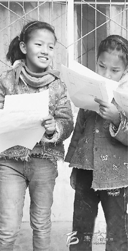 12月14日,古學(xué)鄉(xiāng)衛(wèi)生院體檢點,藏族小孩在看自己的體檢表。