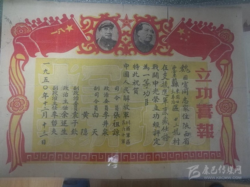 魏國賓榮立一等功喜報。