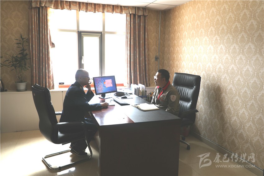 稅務(wù)局紀(jì)檢組長岑領(lǐng)(左)與鑫源礦業(yè)財務(wù)負(fù)責(zé)人劉德山(右)對接減稅降費相關(guān)工作。
