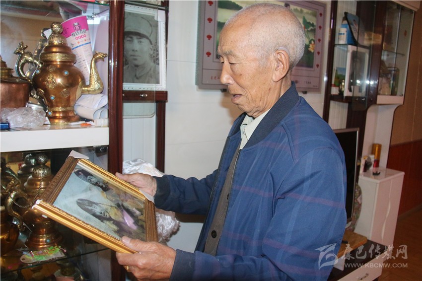 宗珠老人手捧戰(zhàn)友照片憶往昔。