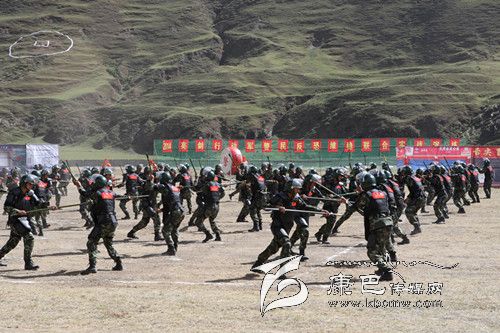 在實戰(zhàn)技能演練中,各單位都表演了自己的拿手絕技:由武警甘孜州支隊雪山飛虎隊20名官兵演練的特種射擊;武警四川總隊第二支隊演練的格斗術(shù);中國人民解放軍甘孜軍分區(qū)獨立營120名官兵演練刺殺操;武警甘孜支隊一大隊和三大隊200名官兵演練的防暴對抗;雪山飛虎隊隊員帶來的硬功表演;州公安局特警支隊特警演練的“雪狼十七式”、摔擒配套動作、實戰(zhàn)對抗。據(jù)了解,“雪狼十七式”是甘孜公安特警通過六年來在高原維穩(wěn)駐訓(xùn)、處置突發(fā)事件,摸索出來的摔擒動作,具有極強的殺傷力,能瞬間制敵。它是我州特警隊員實戰(zhàn)中克敵制勝的法寶,是特警隊員必備的基本功。