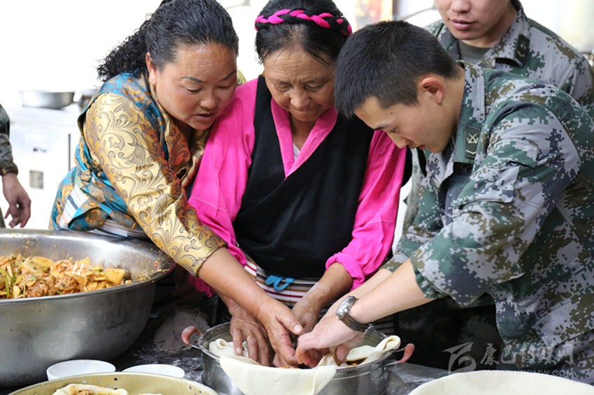 巴塘群眾與部隊官兵共同制作“團(tuán)結(jié)包子”。