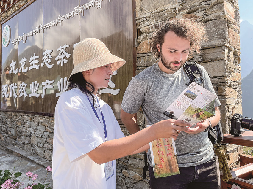 下午2時(shí)許,從康定市城區(qū)取道S434線塔北路一路騎行的志愿者們同劉洪在折多驛“碰頭”匯合。經(jīng)過(guò)驛站項(xiàng)目負(fù)責(zé)人楊欣一番簡(jiǎn)潔明了的指引介紹,首批志愿者迅速投入角色,有聲有色地做起公益服務(wù)。