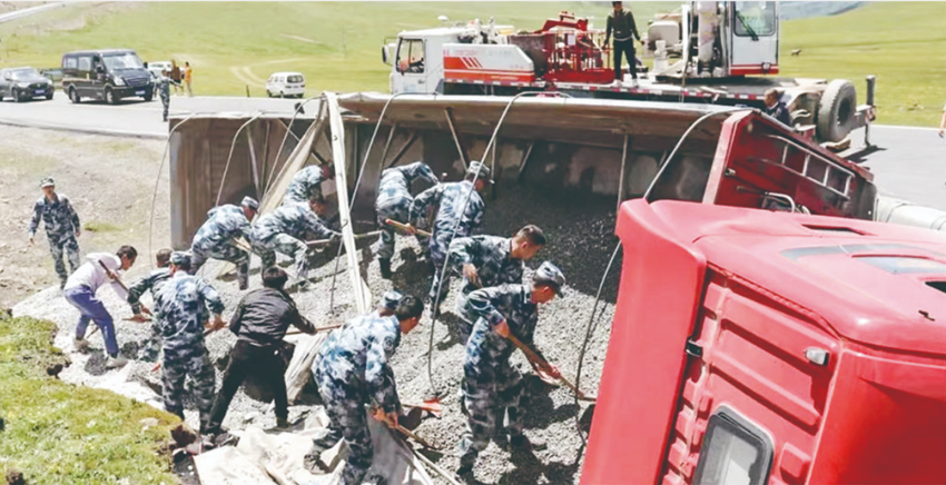 官兵營救側翻車輛。
