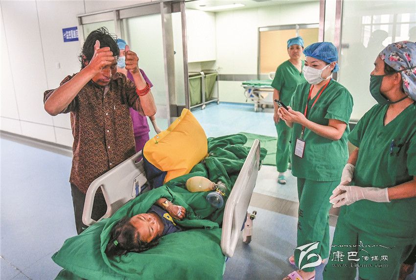 8月23日,來自四川省甘孜藏族自治州甘孜縣兩歲的藏族男孩白瑪日扎在哈爾濱市第一醫(yī)院成功進行唇腭裂修復(fù)手術(shù)。白瑪日扎的父母是牧民,常年在大山上放牧,兩個月才能下山見一次孩子。白瑪日扎和爺爺生活在甘孜縣里。 8月中旬以來,哈爾濱市第一醫(yī)院攜手“中國宋慶齡基金會”、“一笑慈善基金”項目開展大型公益活動,特邀國際頜面外科、美容整形外科、麻醉科等醫(yī)療專家團,免費為貧困家庭唇腭裂兒童手術(shù)治療,并為特困家長和孩子提供免費的食宿,白瑪日扎便是免費接受救治兒童中的一員。8月23日,白瑪日扎的爺爺白瑪多吉(左)對醫(yī)護人員伸出大拇指表示感謝。 新華社發(fā)