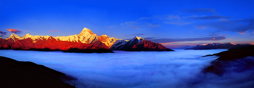秋末冬初,雪山冰川、壯麗的高山峽谷、蒼莽的森林草甸、遼闊的高原牧場,雪山、藏寨、草場、海子、彩林繪成一幅五彩的畫卷,又是那么高遠純凈。這是時間的分娩、秋天的醺醉和色彩的狂歡,紛至沓來的游客在大美甘孜,盡享太陽在藍天白云中噴薄而出那絢麗夢幻的美景。