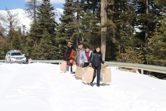 因近日天氣變化浪中村路面積雪過(guò)多,工作組棄車步行手提贈(zèng)送物資前往浪中村,到達(dá)浪中村后,工作組了解結(jié)對(duì)戶生產(chǎn)生活情況、贈(zèng)送棉被并向村民宣講脫貧攻堅(jiān)政策。
