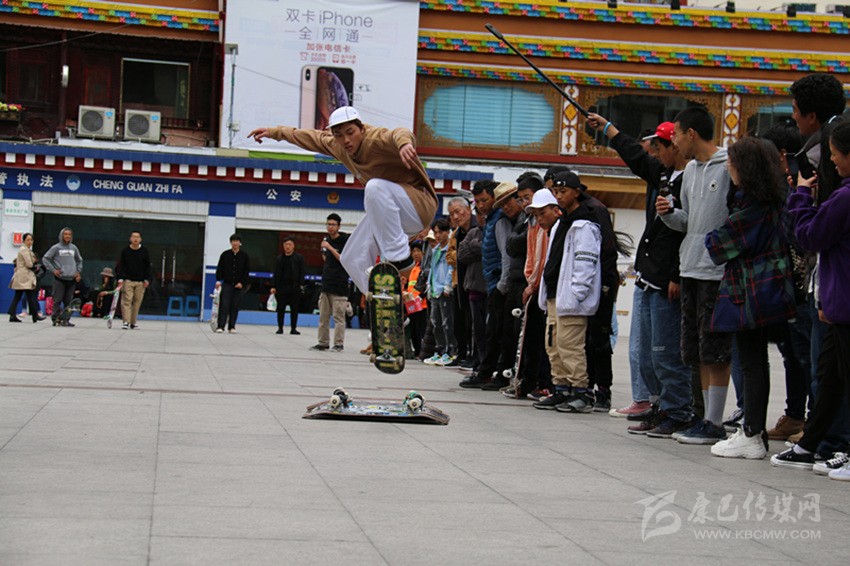 6月22日,世界滑板日,康定市情歌廣場,一群滑板少年舉著“GOTTA’318”大旗,正在演繹精彩。他們時而團(tuán)隊(duì)作業(yè),時而單兵作戰(zhàn),時而爭相競技,時而相互逗樂。當(dāng)他們舞動旗幟,蛇形而行,呼嘯而來,你會感受到蓬勃的青春氣息撲面而來;當(dāng)他們帶板直上滑桿,倏忽而過時,你會在那一剎那感到記憶一陣空白,然后發(fā)出一聲驚嘆;當(dāng)他們瞬間起跳,在空中360度轉(zhuǎn)體,然后像雄鷹一樣翱翔時,你會感覺歲月易老,對青春只有追憶;而當(dāng)他們競技“爭高”“望遠(yuǎn)”時,你會感受到那鍥而不舍的奮斗精神充盈你的脈管……