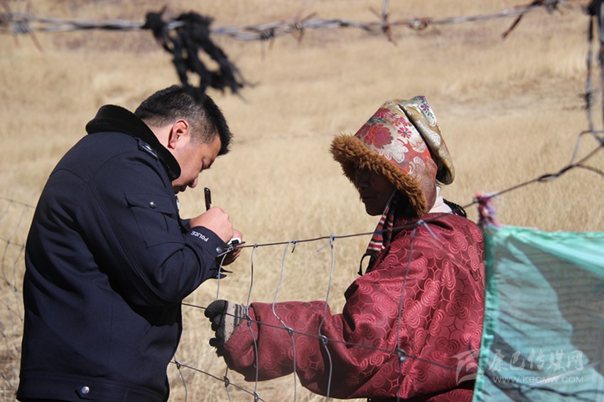 洛絨次稱在牧場上走訪群眾調查了解案情。