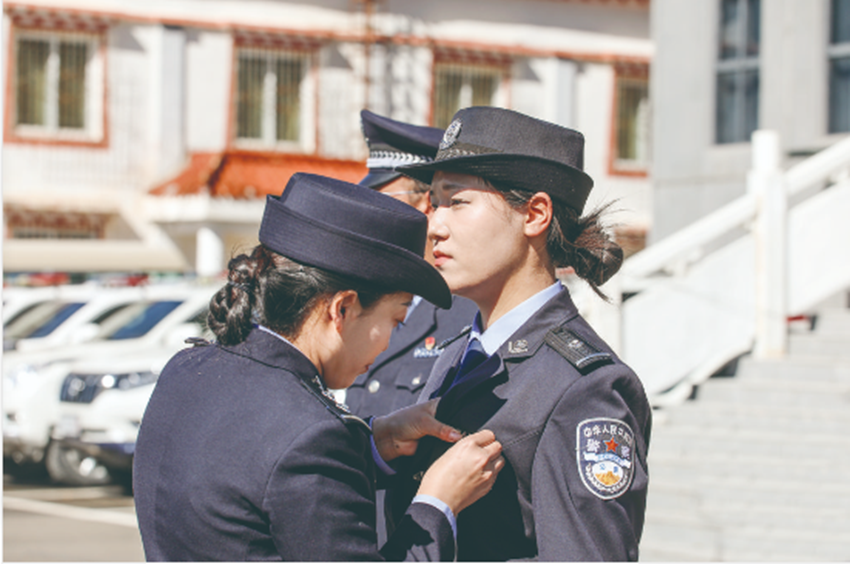 以父之名,開啟藏藍(lán)人生。2022年,大學(xué)畢業(yè)的馬怡琳通過公開招考成為石渠縣公安局的一名民警,回到了這片“父親的草原”。工作兩年來,馬怡琳以扎實(shí)工作和優(yōu)異成績獲得大家的贊譽(yù)?!澳憧烧嫦衲愀赣H,干工作是一把好手啊!”聽到父親生前的同事對自己的贊譽(yù)與認(rèn)可,馬怡琳倍感自豪。